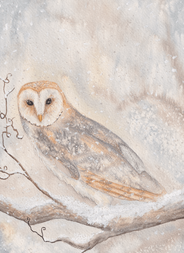 Barn Owl on a Snowy Branch